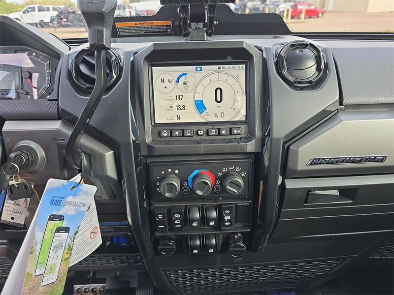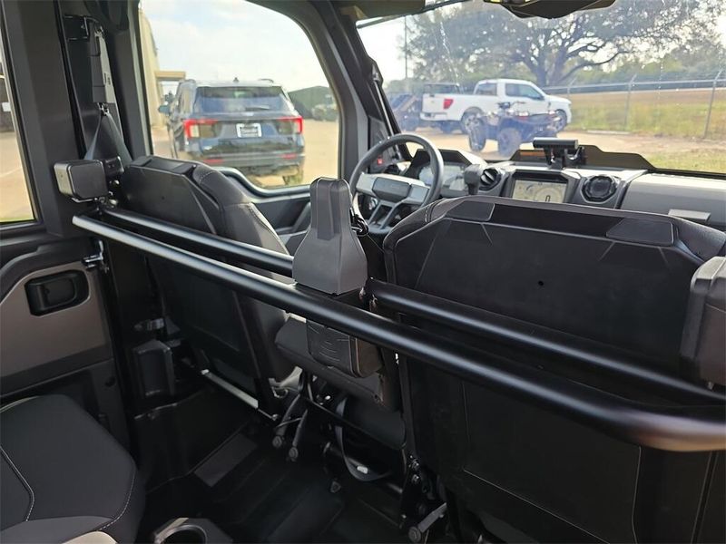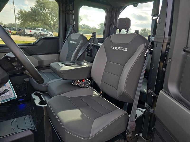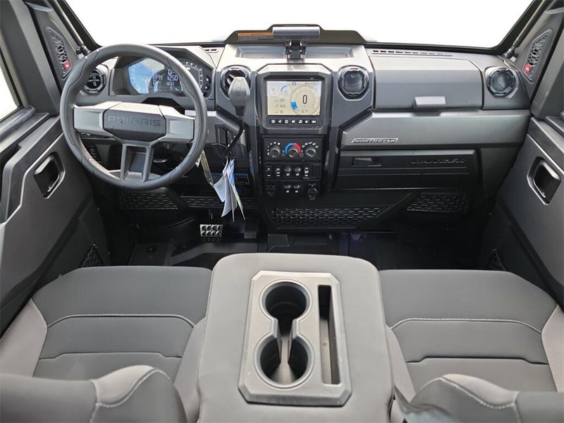 • Other Standard Features: Premium Pro-Shield Cab, Doors with Full Power Windows, Tipout Glass Windshield with Wiper, Rear Glass Panel, Dome Light, Door Puddle Lighting, Interior Accent Lighting, Rearview Mirror, Heat, AC, Defrost. Premium Heated Front Contoured Seats with Additional Bolstering, Premium Headrests and Center Armrest. Premium, Telescoping Steering Wheel and Painted Interior Accents. Polaris Pulse Electrical System (6 position), 140 Amp Charging System. Front Bumper with D-Rings, Top Bar and Integrated LED Auxillary Lights. DC Outlet, USB Charge Port, Trickle Charger, 12V Located in the Cargo Box with In-Dash On/Off Switch, NFC Front Badge, NorthStar Badge. Polaris HD 6,000 Lb. Synthetic Rope Winch with Autostop and Wireless Remote. Power Windows (Front & Rear)