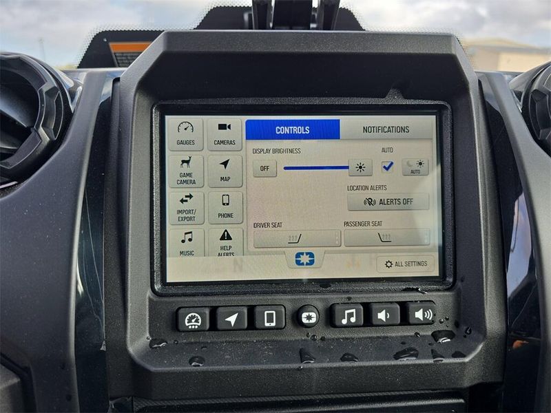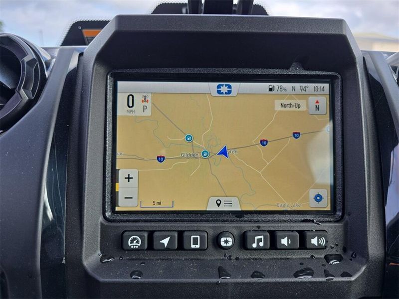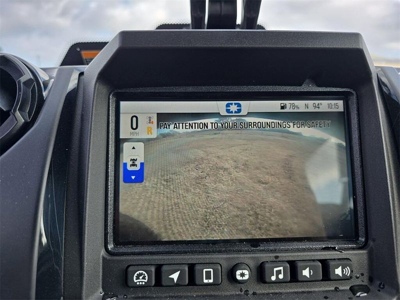 • Instrumentation: Driver Forward Information Center w/ 4 in Color Display + Analog Speedometer & Tachometers: User Selectable Blue/Red Backlighting & Brightness, Speedometer, Tachometer, Odometer, Tripmeter, Clock, Hour Meter, Gear Indicator, Fuel Gauge, Coolant Temperature, Oil Pressure, Transmission Indicator, EPS Indicator, Voltmeter, Service Indicator and Codes, Seat Belt Reminder, Speed Limiting 7" Glove Touch Display with JBL Audio. Featuring Plow Mode, Group Ride, GPS Navigation, Bluetooth, AM/FM Radio, Equipped with Connectivity through Ride Command+